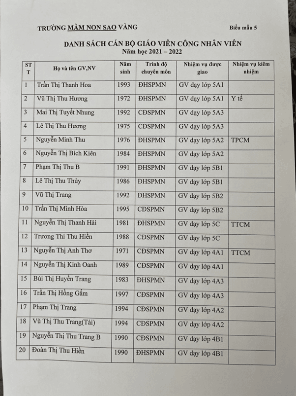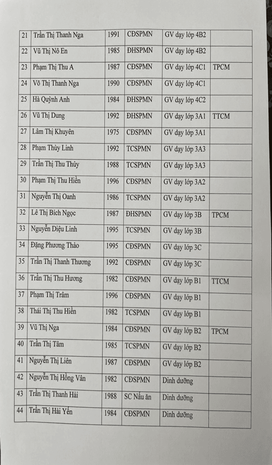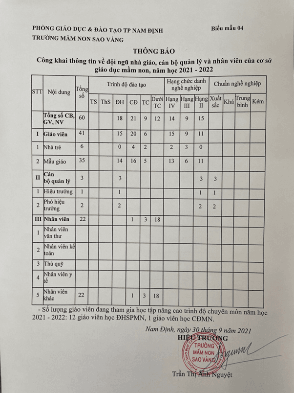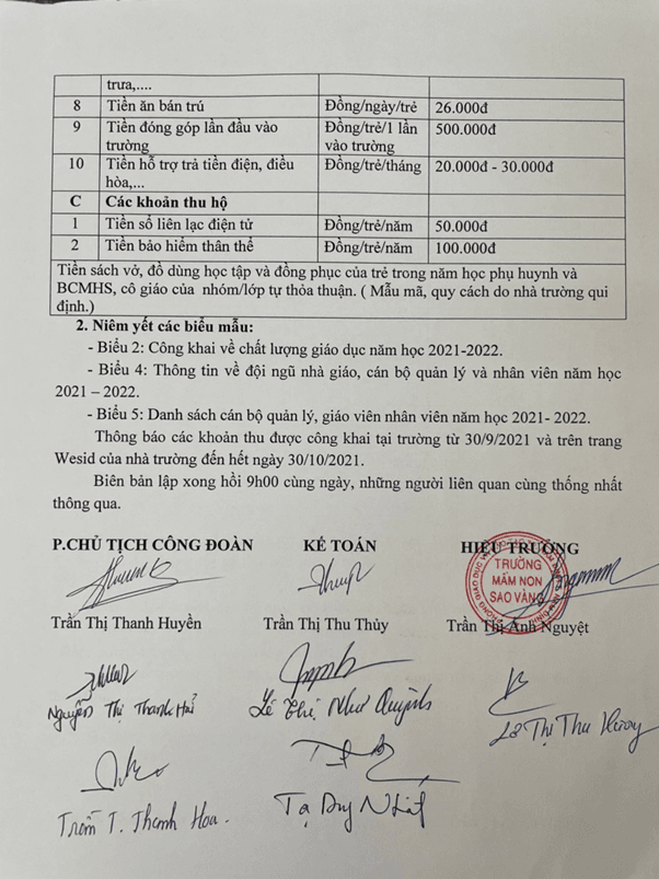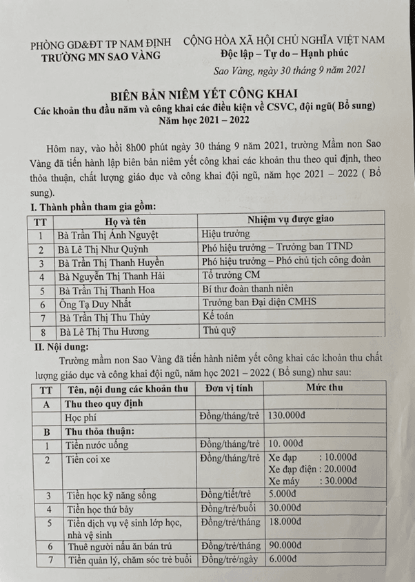 Công khai bổ sung về các khoản thu và đội ngũ cán bộ, giáo viên, nhân viên