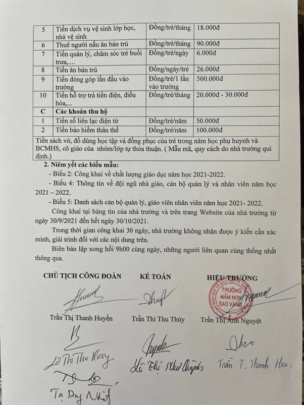 Kết thúc công khai bổ sung đầu năm học 2021-2022 – Trường mầm non Sao Vàng