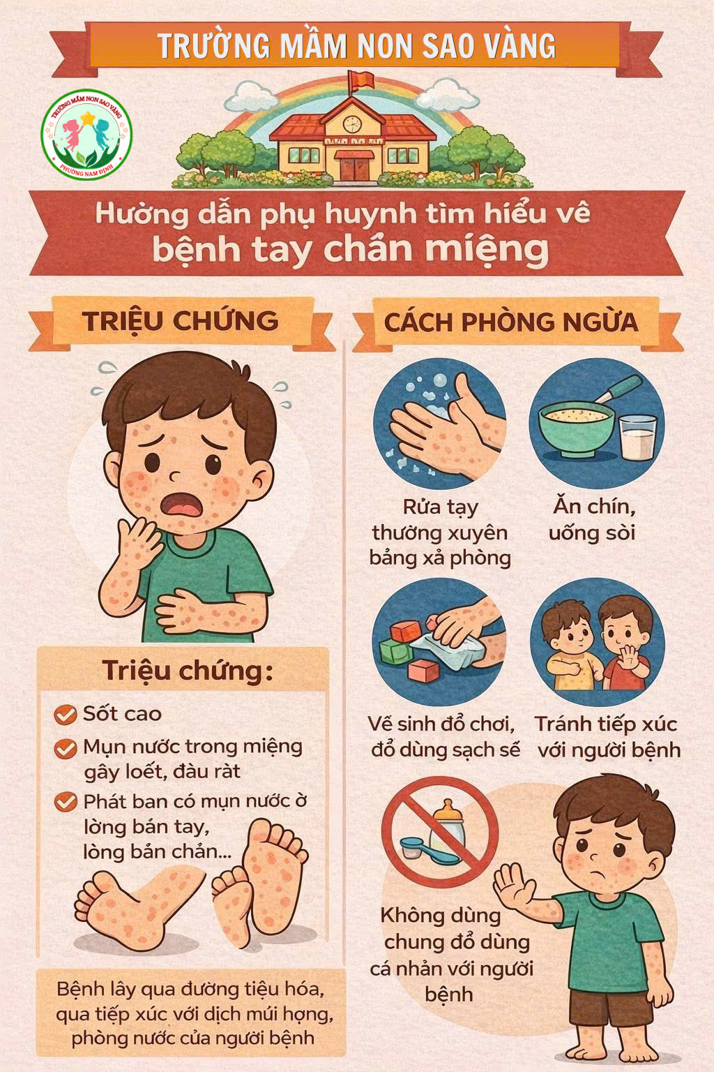 TRƯỜNG MN SAO VÀNG TUYÊN TRUYỀN VỀ BỆNH TAY CHÂN MIỆNG